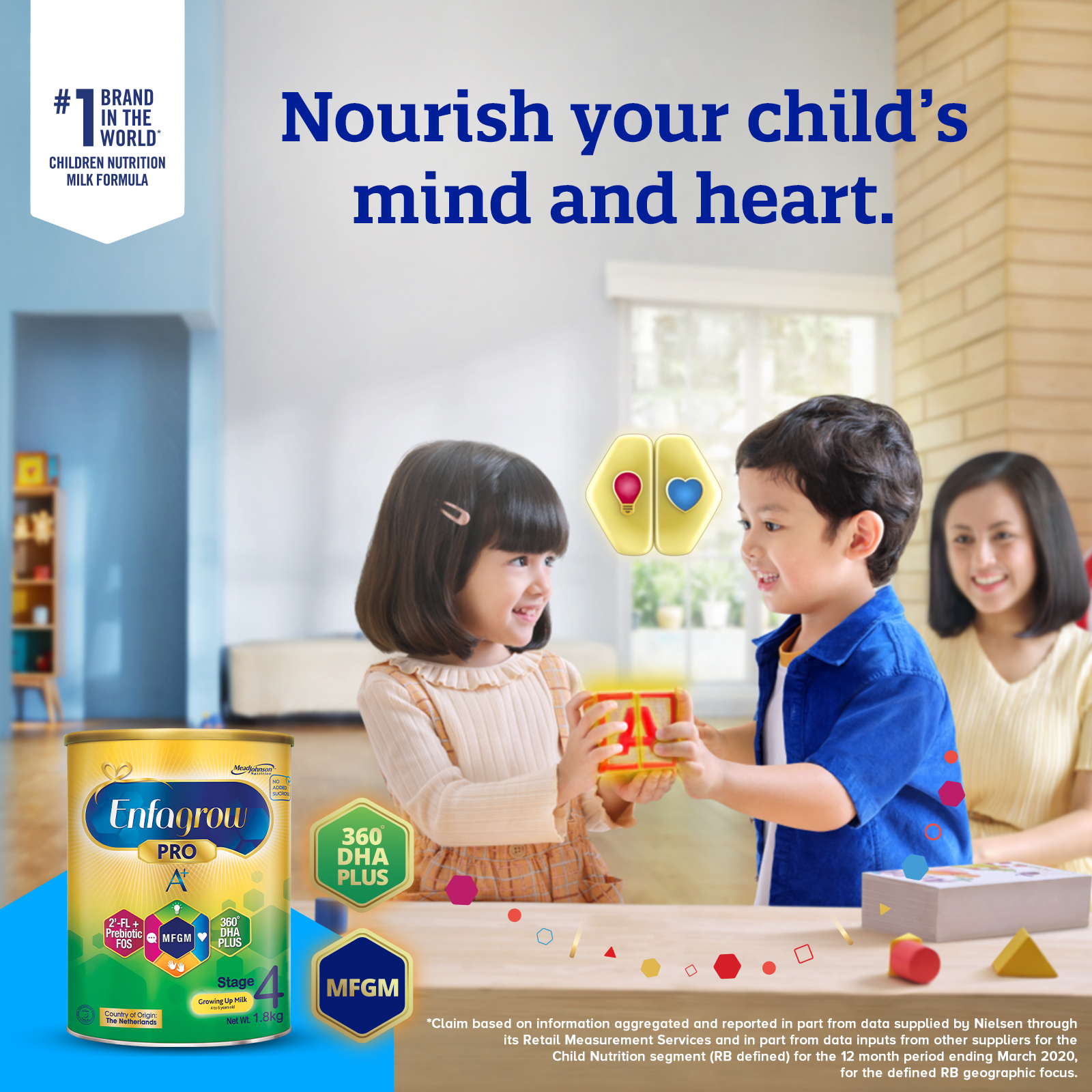 • With over 100 years of experience in pediatric nutrition, Mead Johnson Nutrition has scientifically formulated Enfagrow Pro A+ Stage 4 with a unique blend of nutrients that are important for overall mental and physical development.