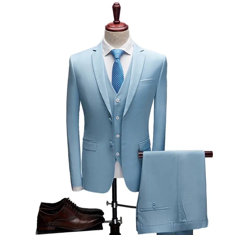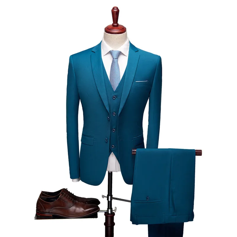 Men Business 3 Pieces Suits Sets / Male Groom Wedding Banquet Solid Color High End Custom Large Size Brand Blazers Jacket Coat