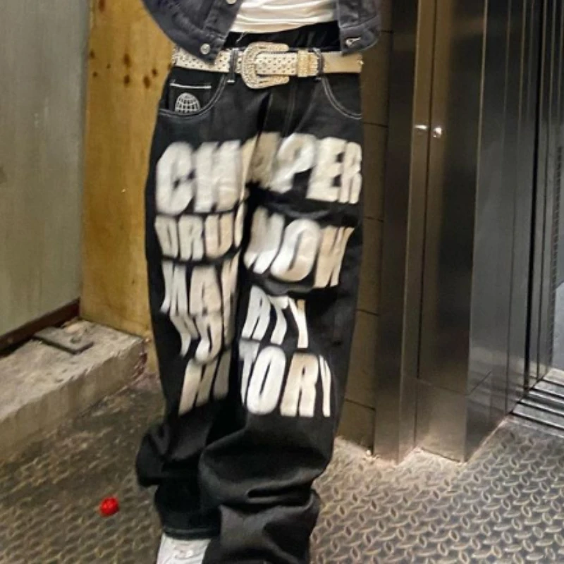 Wide Leg Trousers Printed Streetwear Jeans Straight Hip Hop Letterprinted Pants Printed Pants New Trend Fashion Punk Rock Loose