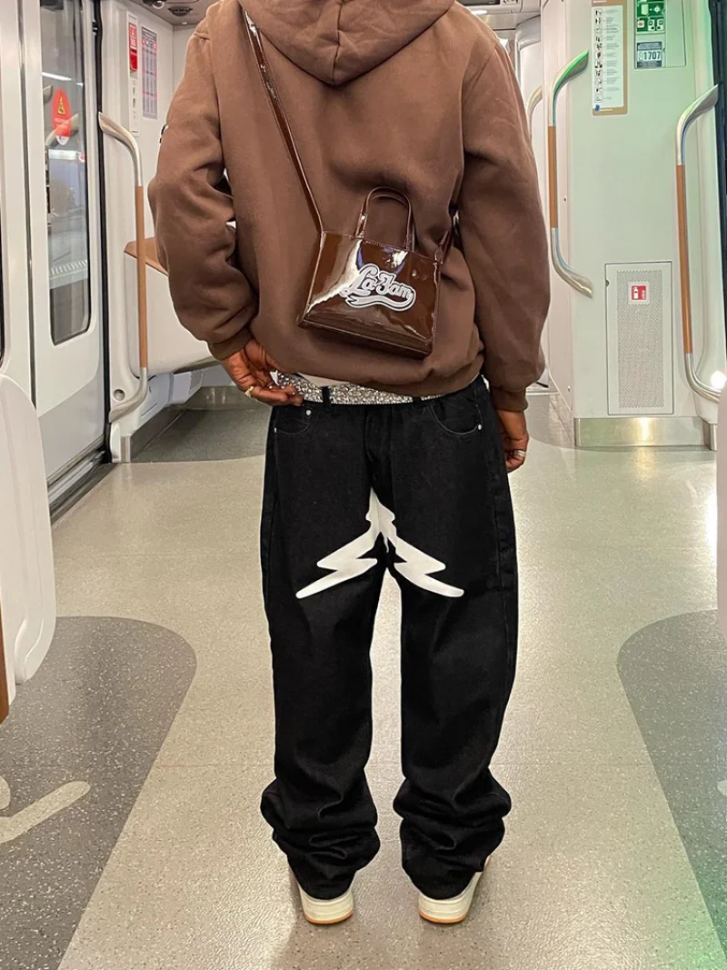 Y2K Men's Printed Stars Dark Black Jeans 2022 Hip Hop Street Fall Fashion Retro Design Casual Low Waist Loose Straight Jeans New